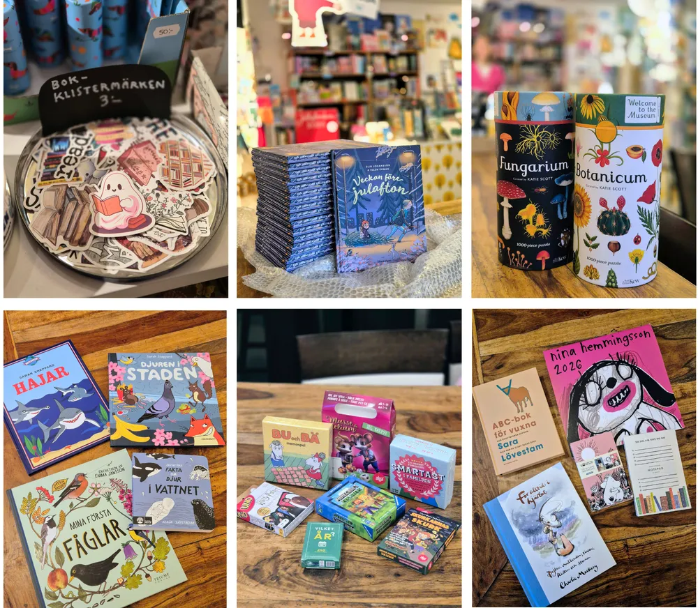 I sortimentet ingår även pussel, spel, prints och gratulationskort. Allt är handplockat med omsorg, och sortimentet förändras löpande, så att både små och stora kan hitta sina favoriter.